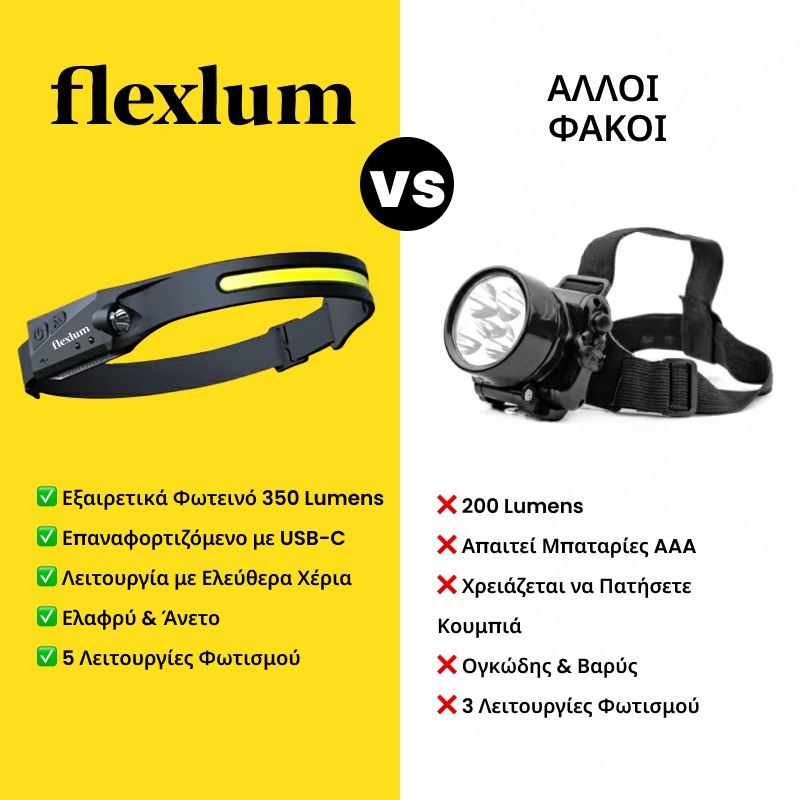 Έχεις κουραστεί να κινείσαι στο σκοτάδι; Πες αντίο στις σκοτεινές γωνιές και τις σκιές με τον Flexlum LED Φακό κεφαλής 230°!