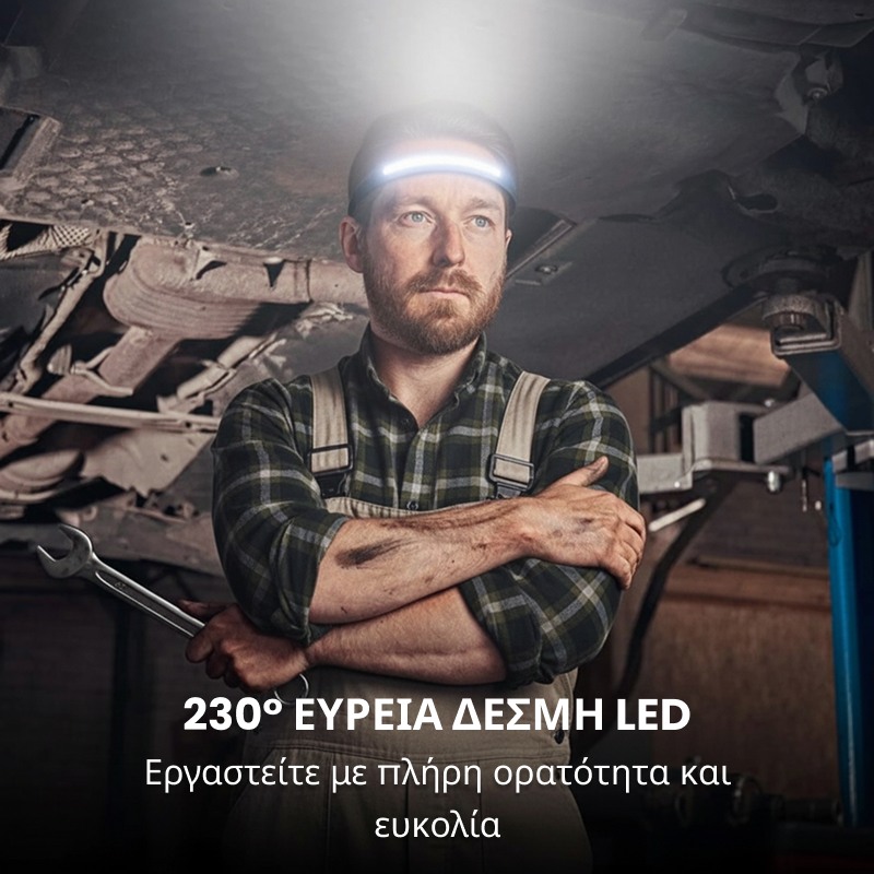 Το υπερ-φωτεινό LED προσφέρει γωνία ορατότητας 230°, ώστε να βλέπεις καθαρά ό,τι υπάρχει γύρω σου — ιδανικό για κάθε δραστηριότητα.