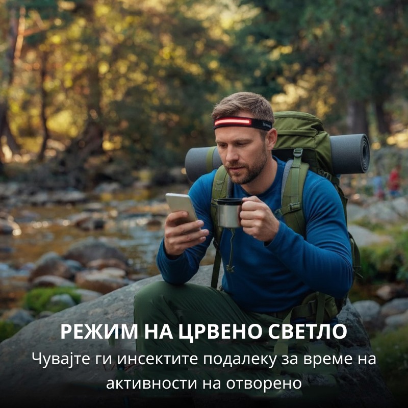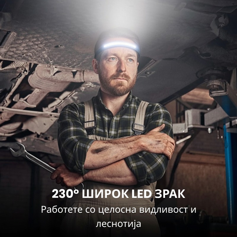 Супер-моќното ЛЕД осветлување обезбедува широк агол на видливост од 230°, за да гледаш јасно сè околу тебе – совршено за најразлични активности.