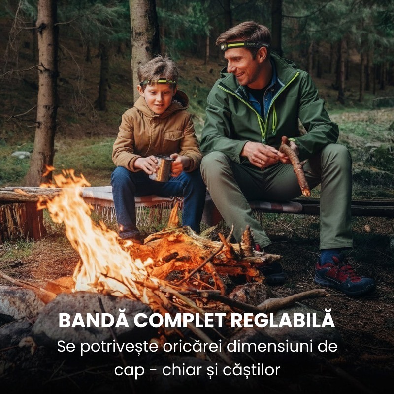 Desigur! Lanterna este concepută cu benzi reglabile pentru a asigura o fixare confortabilă pe diferite dimensiuni de cap. O poți ajusta ușor pentru confortul tău optim.